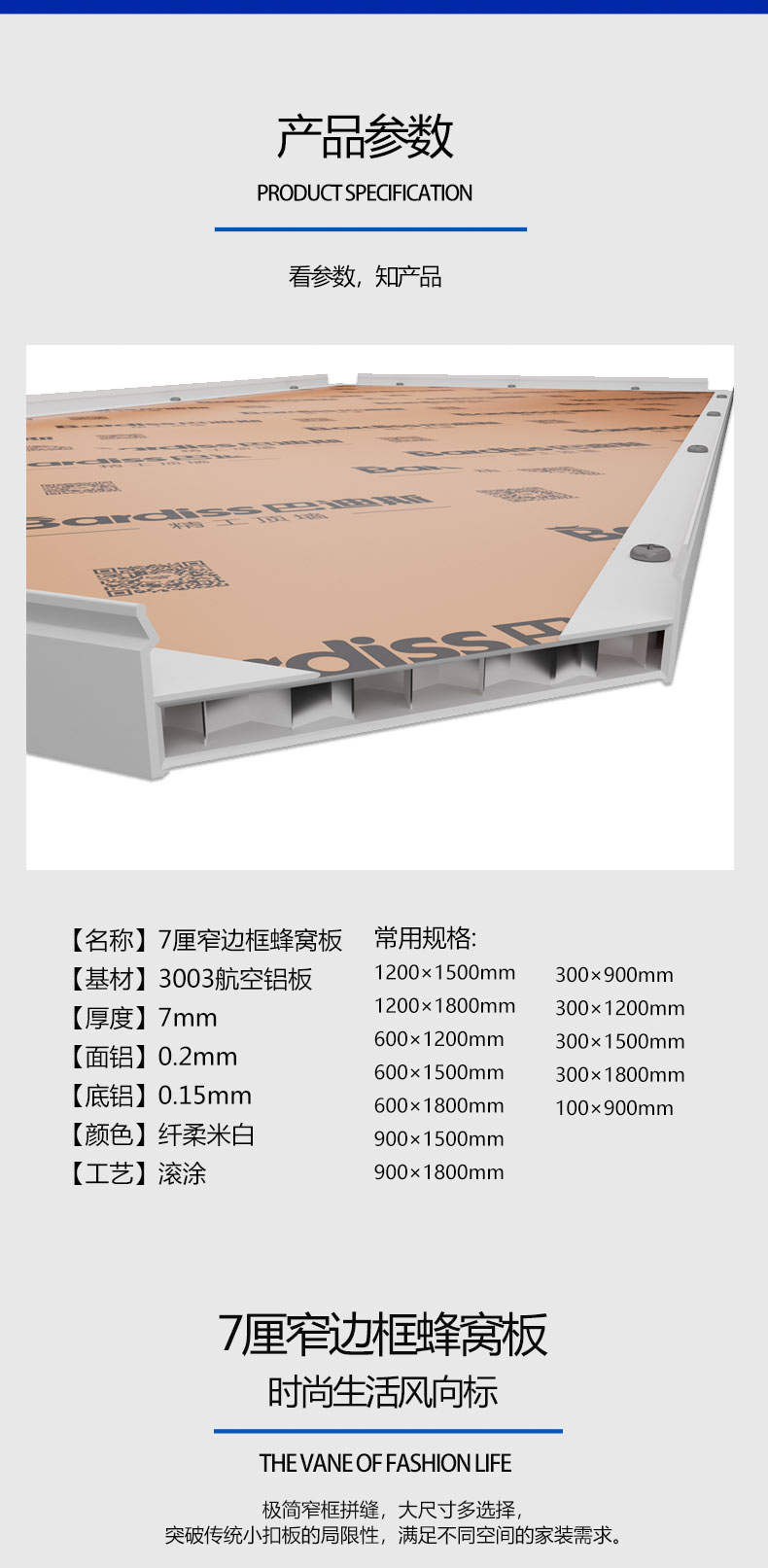 7厘窄邊框蜂窩板